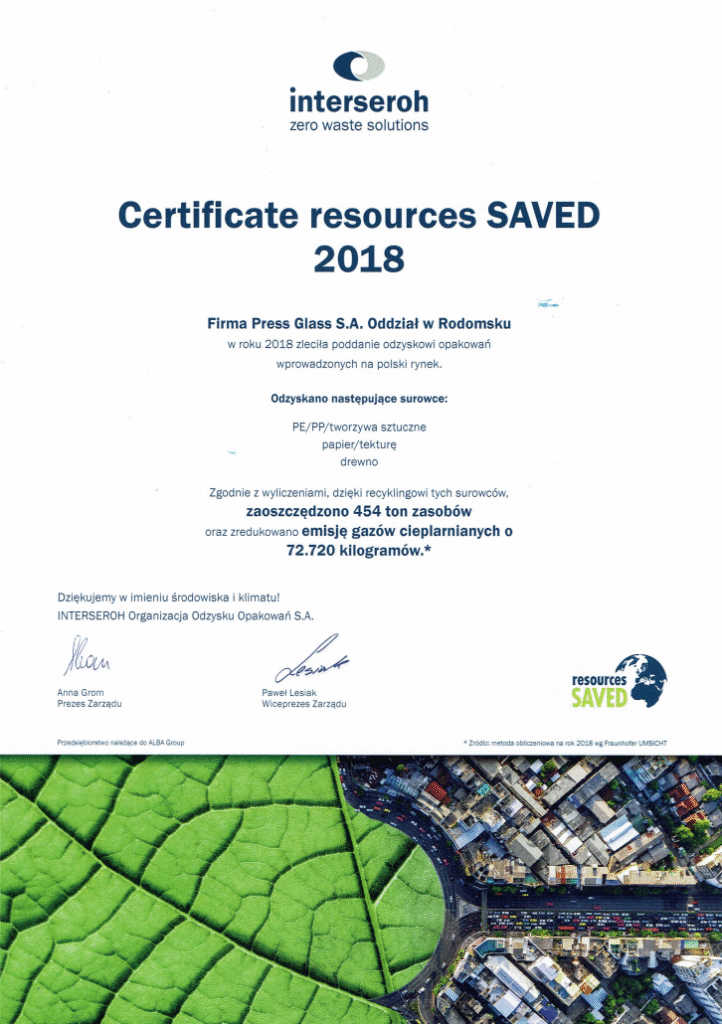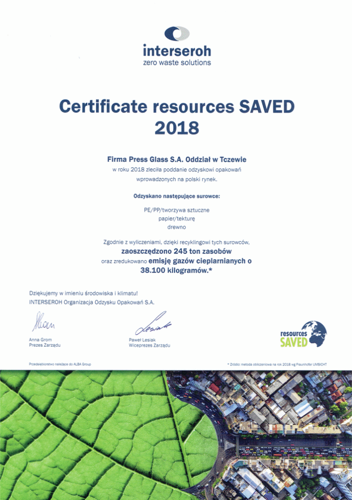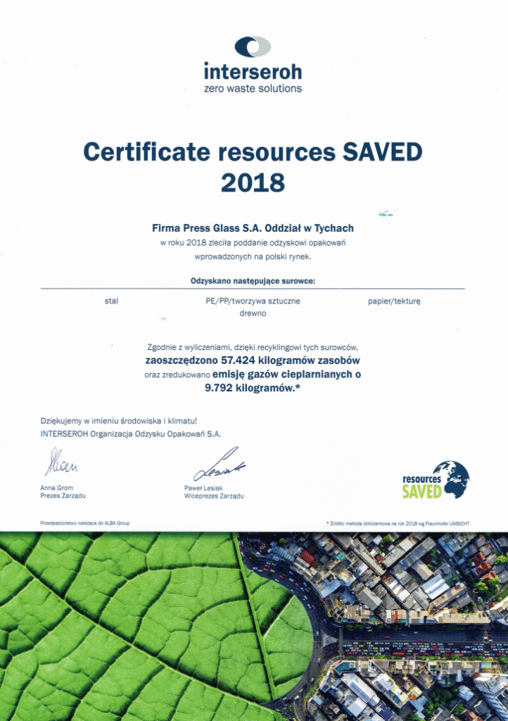 In order to reduce our impact on the environment, we are making changes in the production of products and in our habits. To facilitate this process, we have adopted the worldwide system of measures to protect the environment, ISO 14001. In 2025, we introduced ISO 50001, the international standard for energy management, at Press Glass’ Polish factories.
