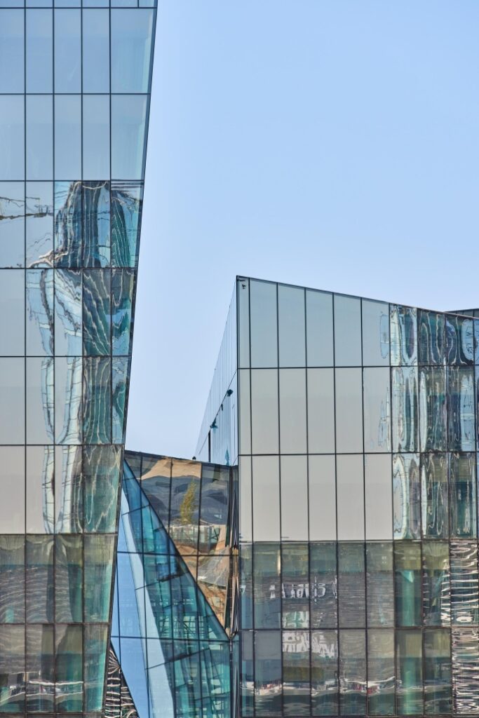 Produkcja wielkoformatowych szyb zespolonych (3500 x 3000 mm) o skomplikowanej geometrii była sporym wyzwaniem. Niektóre jednostki miały formę trapezów ze stopniowanymi krawędziami, a inne trójkątów o bardzo ostrych kątach. Skuteczna realizacja projektu była możliwa dzięki aktywnemu udziałowi zespołu inżynierów Press Glass.