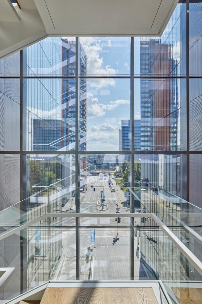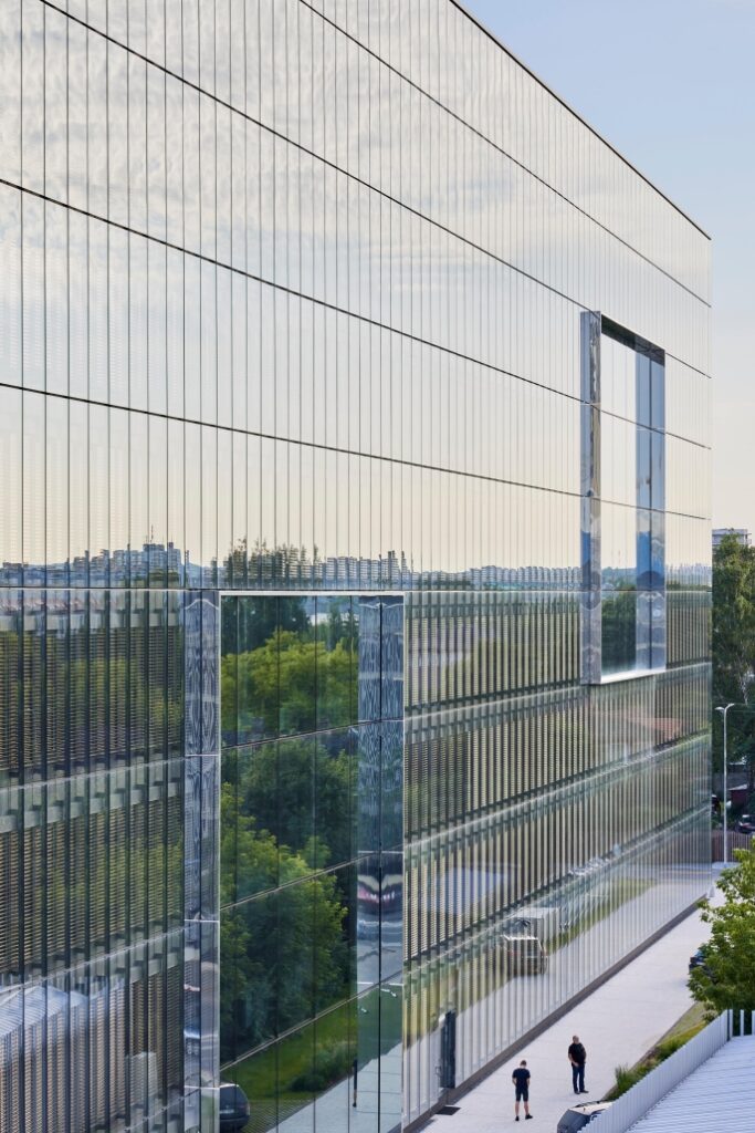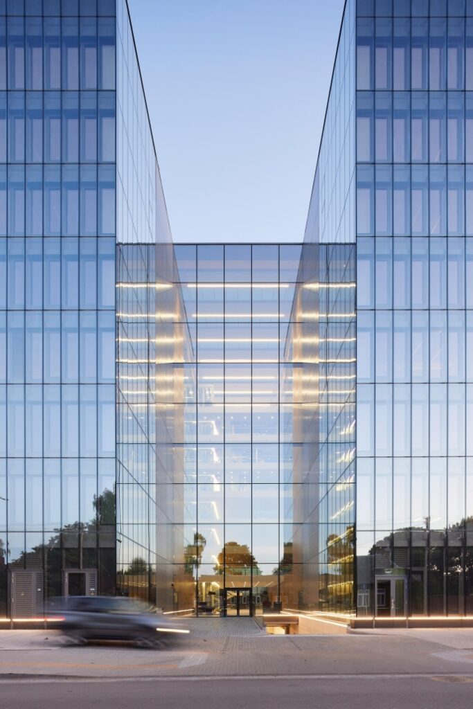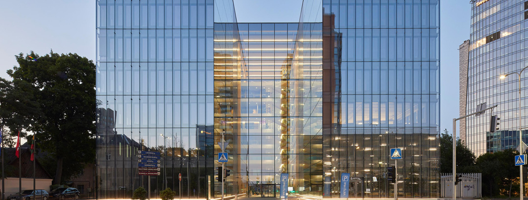 Nowoczesne centrum biznesowe LVIVO stało się jednym z najbardziej innowacyjnych obiektów tego typu na Litwie. LVIVO Verslo Centras doskonale wpisuje się w krajobraz dynamicznie rozwijającego się prawego brzegu rzeki Neris, w pobliżu głównej alei Wilna – Konstitucijos Prospektas. Firma Press Glass dostarczyła łącznie ponad 14,000 m²wysoko przetworzonych szyb zespolonych oraz pojedynczego szkła hartowanego do systemu „podwójnej skóry”.