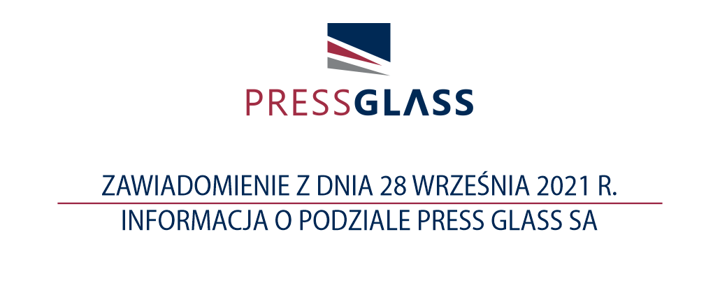 Informujemy, że w dn. 28 września 2021 r. został przyjęty i podpisany plan podziału spółki Press Glass Spółka Akcyjna z siedzibą w Konopiskach.
