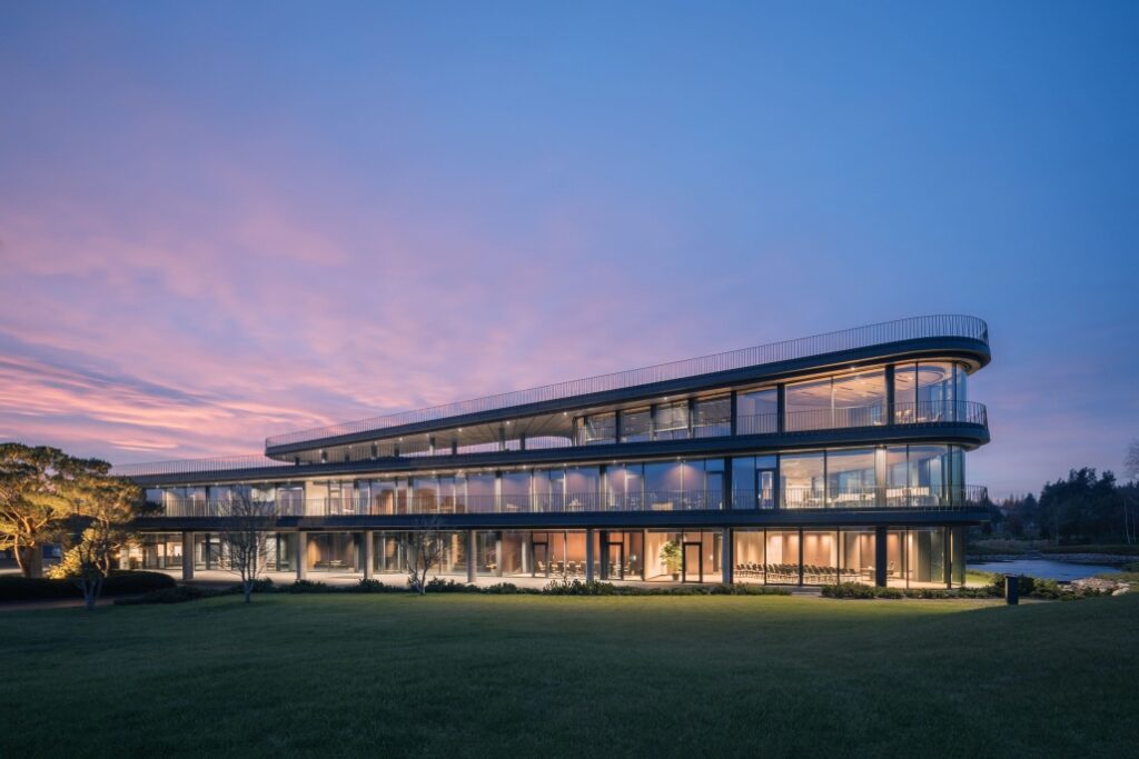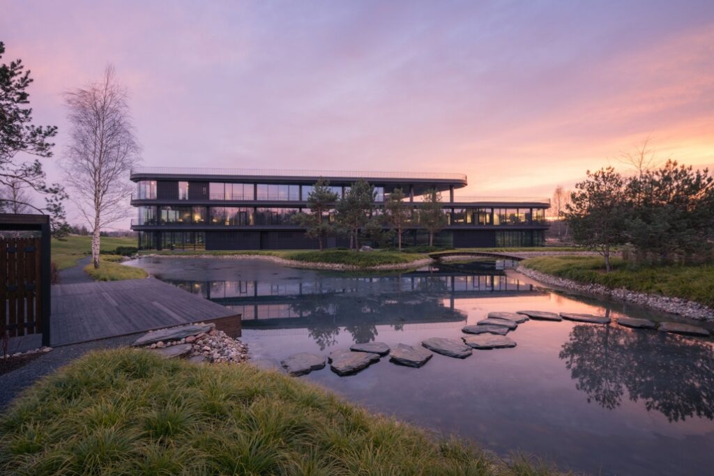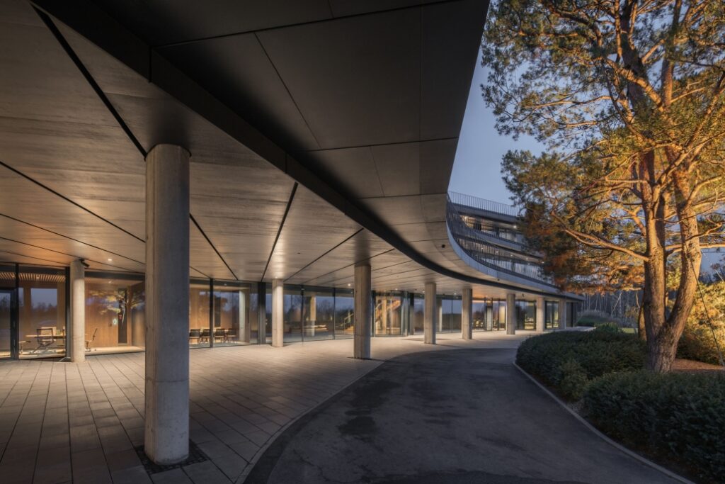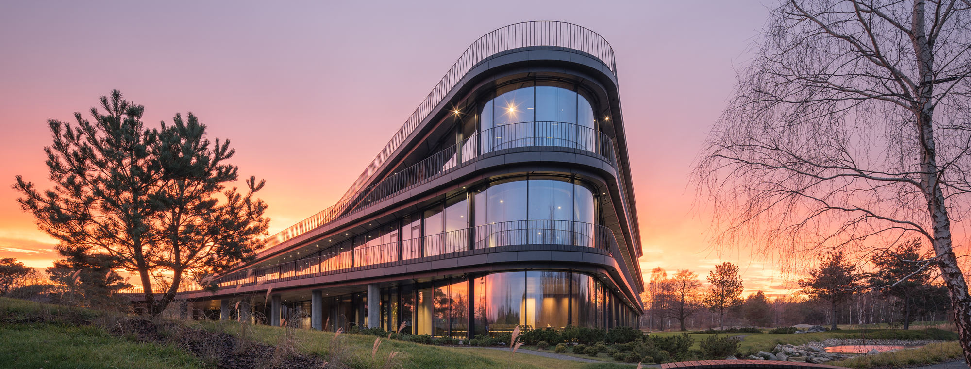 “Siedziby firm powstają zazwyczaj w centrach miast w pobliżu ważnych węzłów komunikacyjnych. Naturalny krajobraz i perspektywa po horyzont raczej nie kojarzą się z zabudową biurową. […] Ambicją inwestora było stworzenie na zielonym płaskowyżu nowoczesnej siedziby, która wyrazi dynamiczny charakter firmy, a jednocześnie zapewni pracownikom kontakt z naturą” – wskazuje Konior Studio.
