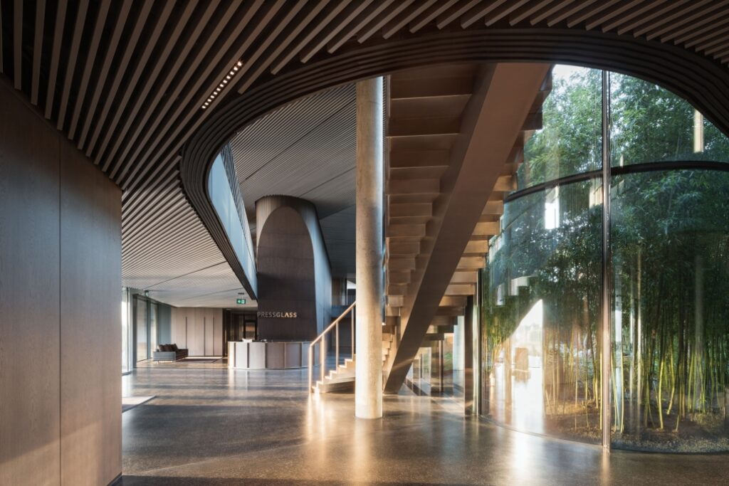 Za projekt siedziby PRESS GLASS SA w Konopiskach odpowiada Konior Studio, jedna z czołowych polskich pracowni architektonicznych, która ma na swoim koncie np. projekt siedziby NOSPR w Katowicach.