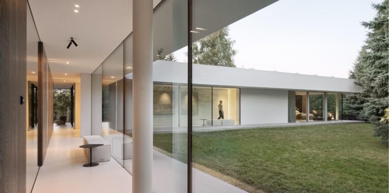 Wśród obiektów, do których PRESS GLASS dostarcza szyby zespolone znajdują się również wysokiej klasy domy prywatne, w których całoszklane fasady stanowią o wizualnej lekkości projektu i otwierają jego przestrzenie na otaczającą zieleń, jednocześnie utrzymując właściwości termoizolacyjne. Takim przykładem jest prezentowany Dom S.