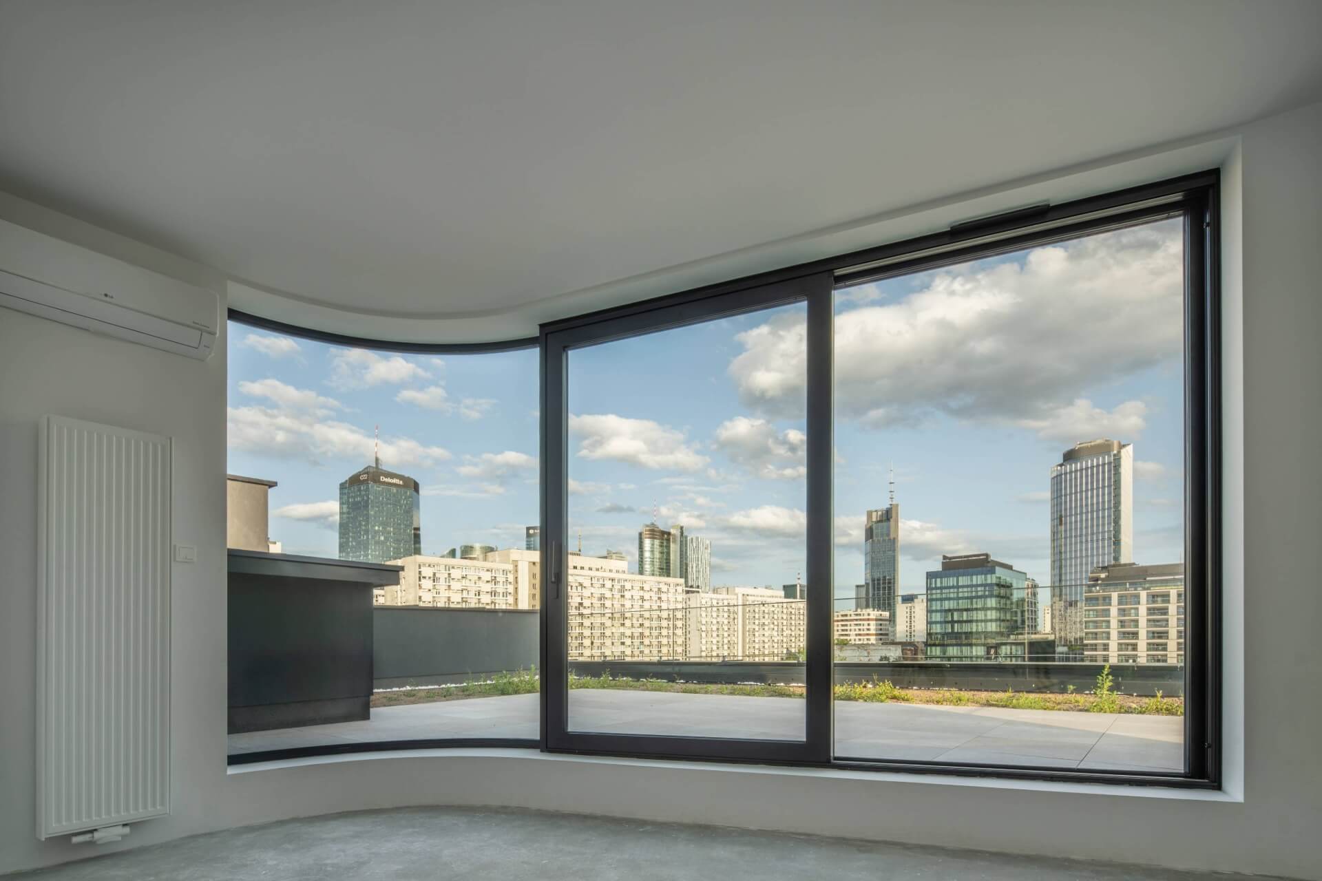 Wybrane apartamenty posiadają elementy stolarki okiennej ze szkłem giętym cylindrycznie