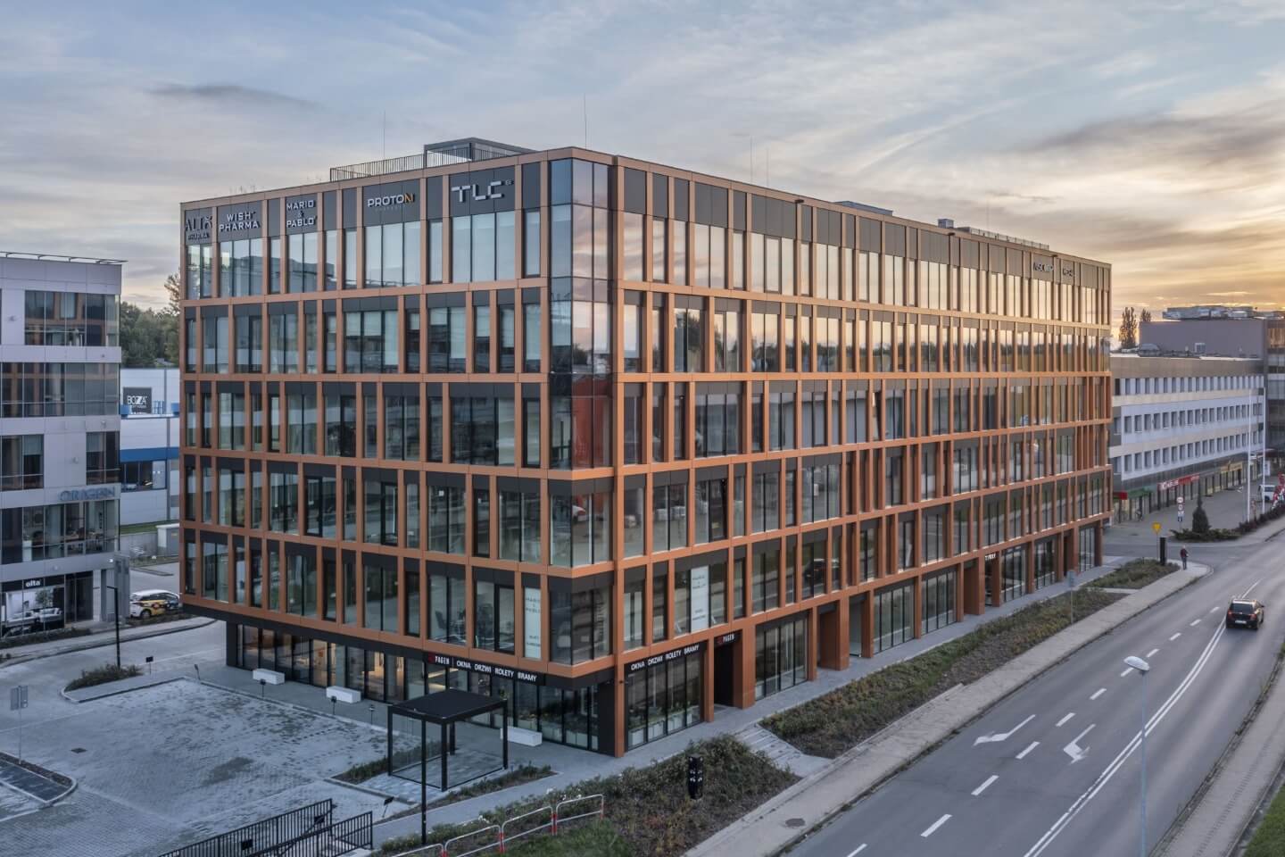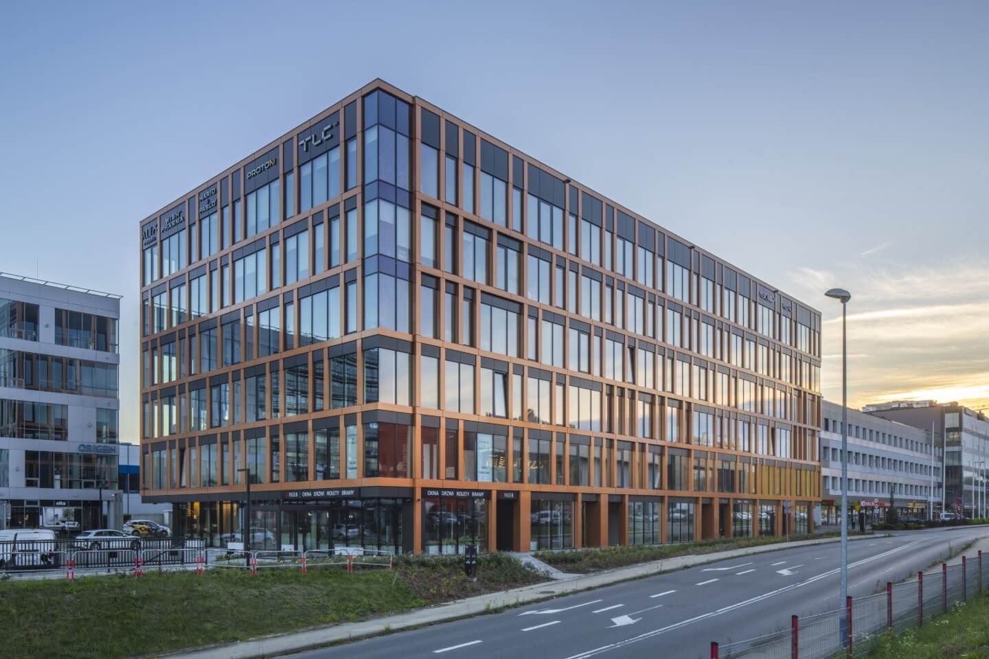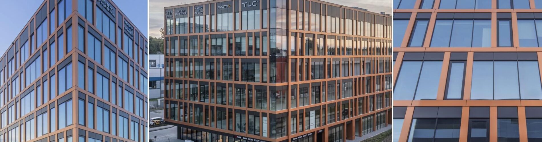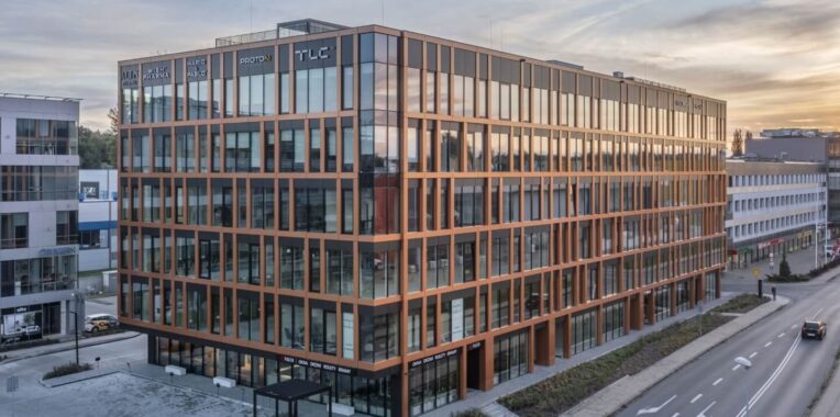 Proton Business Centre w Krakowie to nowoczesny budynek biurowy zaprojektowany z myślą o elastycznych przestrzeniach pracy dla firm z sektora usług i nowych technologii. Istotną rolę odgrywa tu szkło — duże przeszklenia fasady zapewniają wysoki poziom doświetlenia światłem dziennym, co poprawia komfort pracy i ogranicza zużycie energii na oświetlenie.