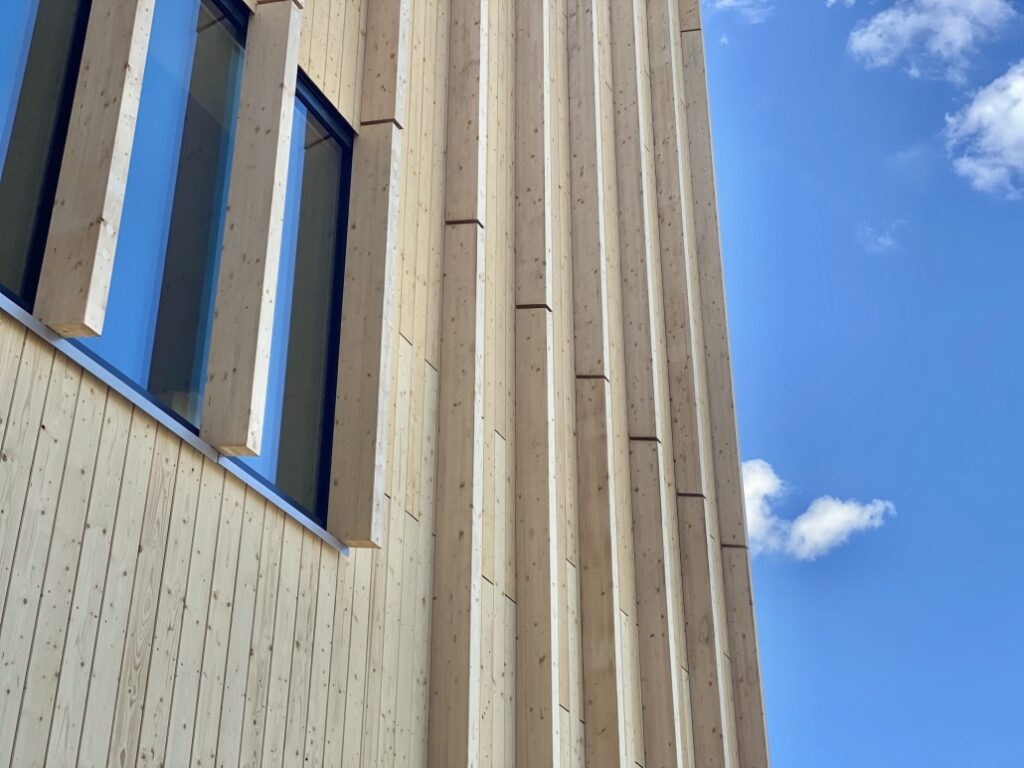 W oszkleniu tego unikalnego budynku wykorzystano w sumie 800 m2 szyb naszej produkcji, w tym szyby dwukomorowe o budowie 6/16Ar/4/16/8,76T (VSG 44.2T). Zespolenia te charakteryzują się użyciem hartowanych i poddanych testom HST szyb kontroli słonecznej Sunguard SNX 60 HT. Od wewnętrznej strony zastosowano z kolei bezpieczne szyby VSG z niskoemisyjną powłoką. Nasze szyby zostały dostarczone w ramach współpracy z firmą Lignas Timber Systems.